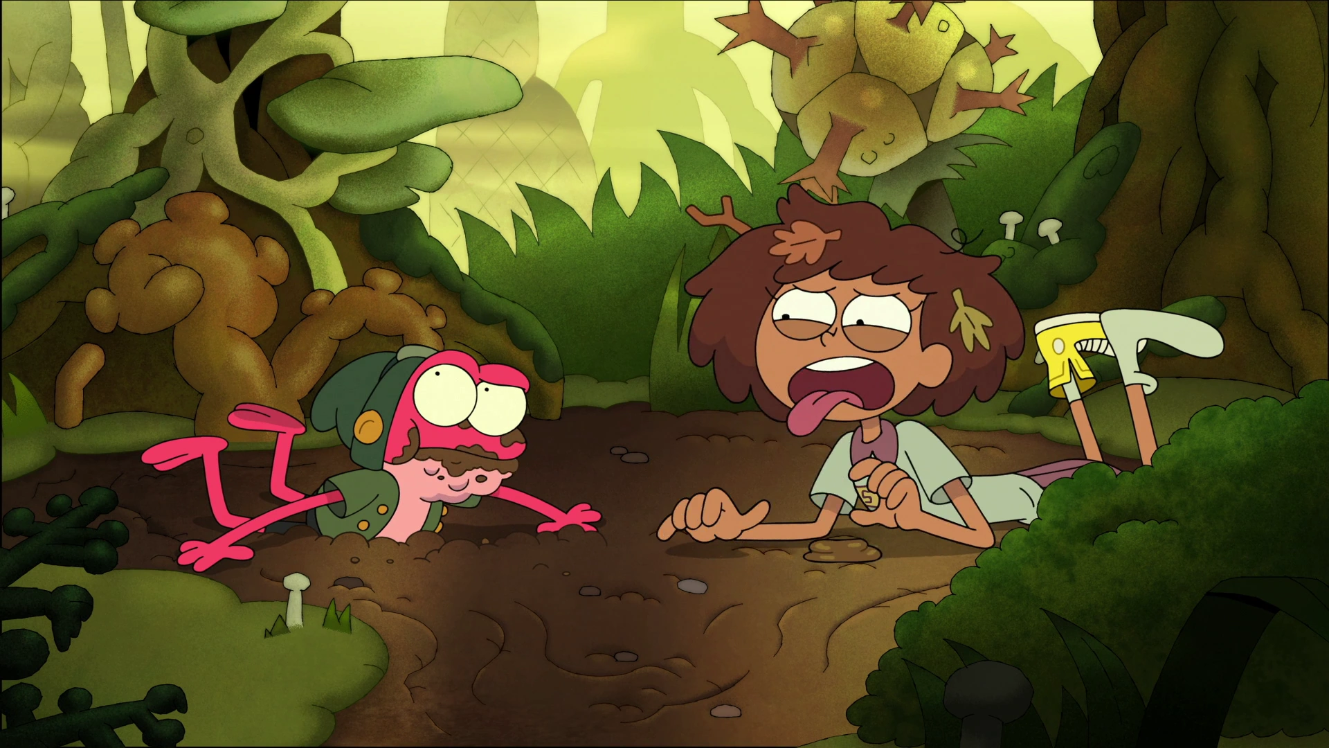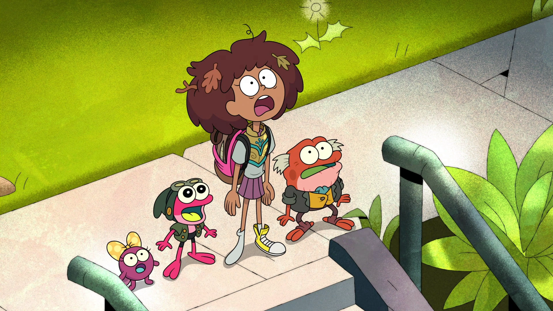- ↑ 16.0 16.1 16.2 16.3 16.4 16.5 16.6 16.7 16.8 16.9 Matt Braly, Jack Ferraiolo (writers) and Derek Kirk Kim (director) (June 17, 2019). "Best Fronds". Amphibia. Season 1. Episode 1B. Disney Channel.