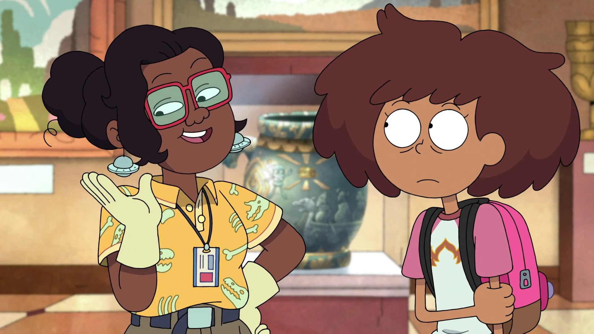 - ↑ 30.0 30.1 30.2 Adam Colás (writer) and Joe Johnston (director) (October 23, 2021). "Fight at the Museum". Amphibia. Season 3. Episode 4A. Disney Channel.