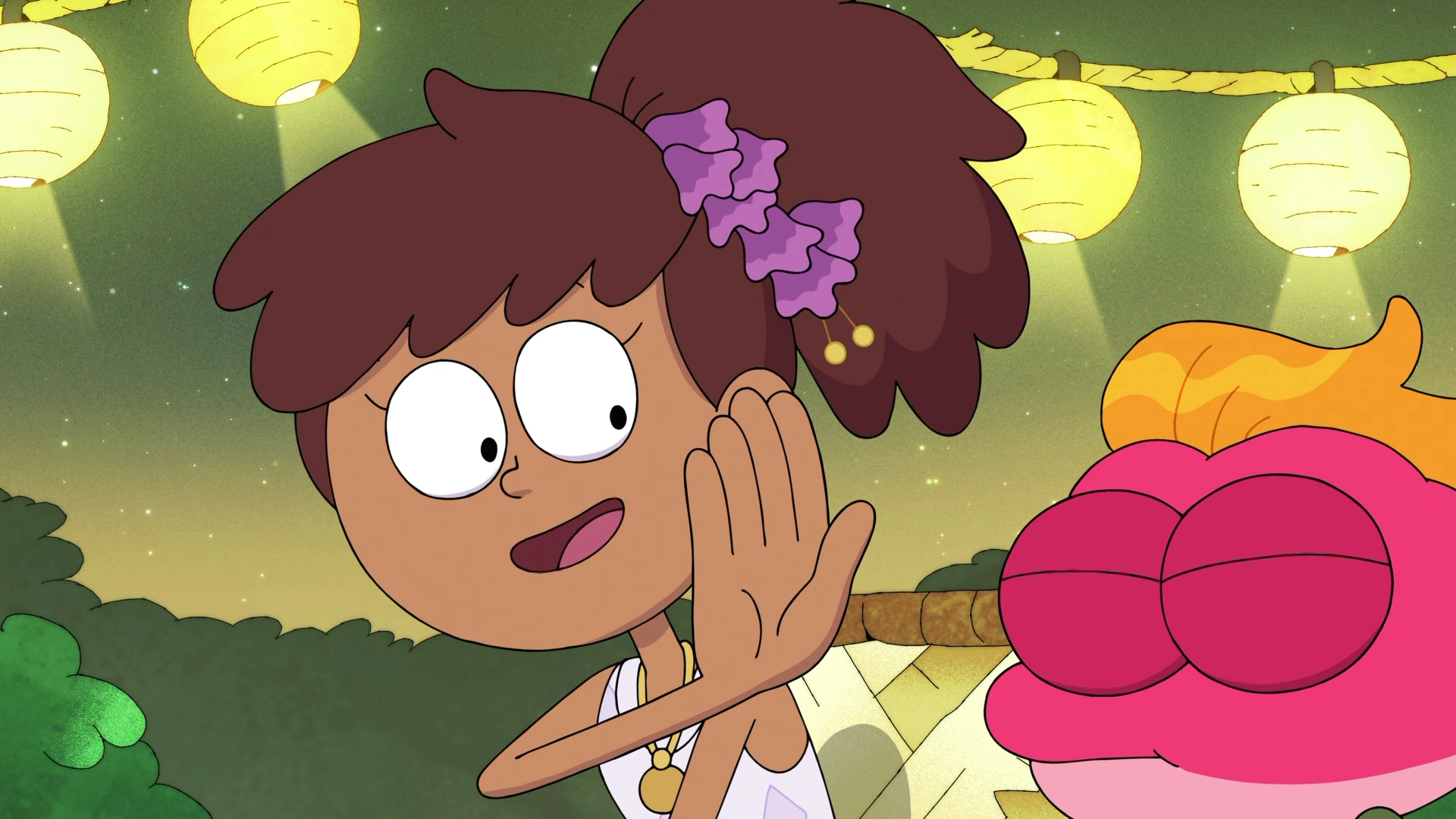 - ↑ 5.0 5.1 5.2 Michele Cavin (writer) and Kyler Spears (director) (September 19, 2020). "The Sleepover to End All Sleepovers". Amphibia. Season 2. Episode 10A. Disney Channel.