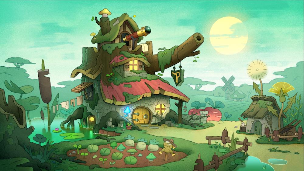 Hop Pop has his own bedroom by the entrance to the house while Sprig and Polly's respective rooms are on the second floor along with a bathroom. The third floor, aka the attic, seems to be a sort of observatory, given the telescope by the balcony there.